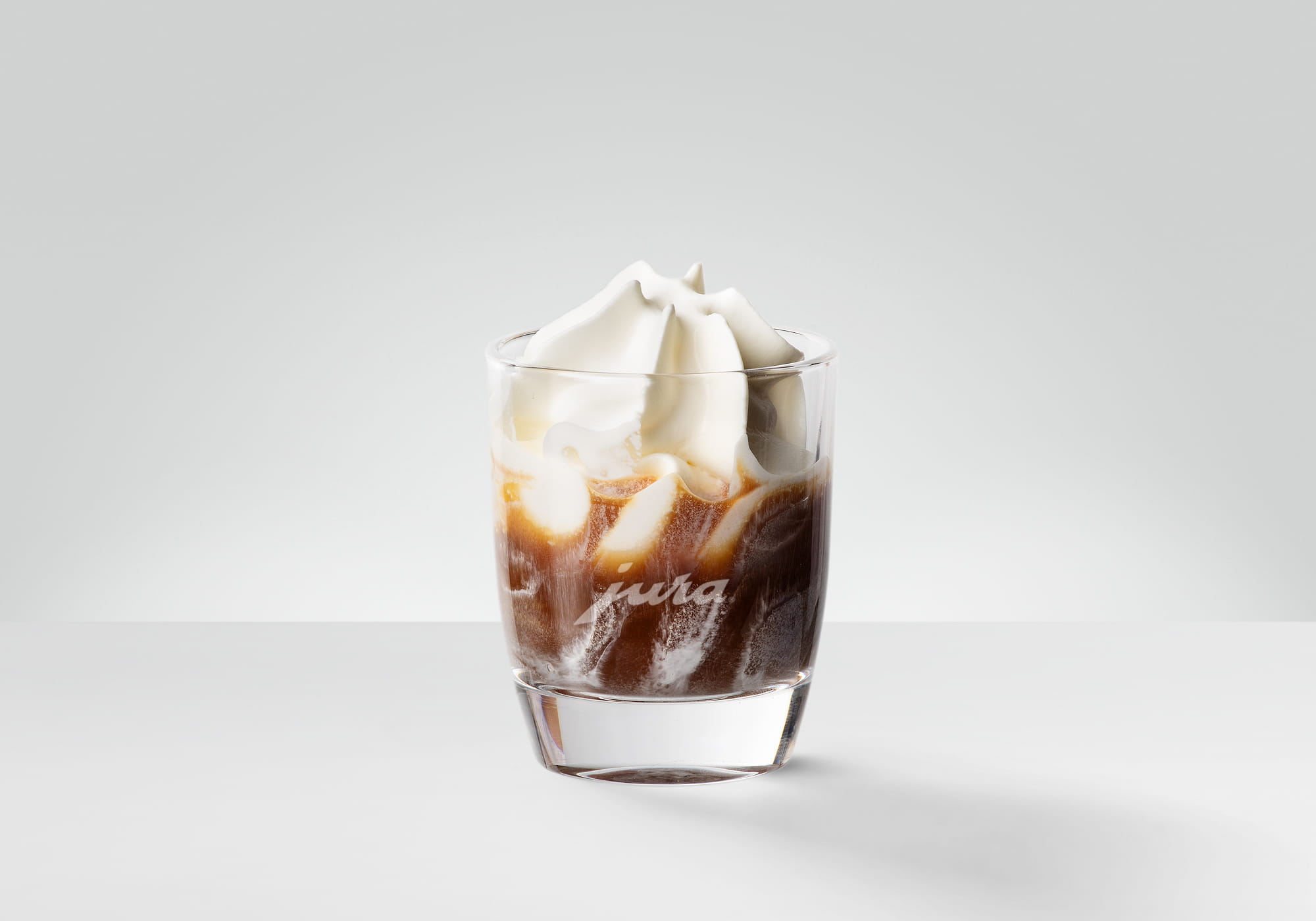 • Bereiten Sie die Schlagsahne wie gewohnt zu und geben Sie diese in ein Espressoglas, bis dieses halb voll ist.