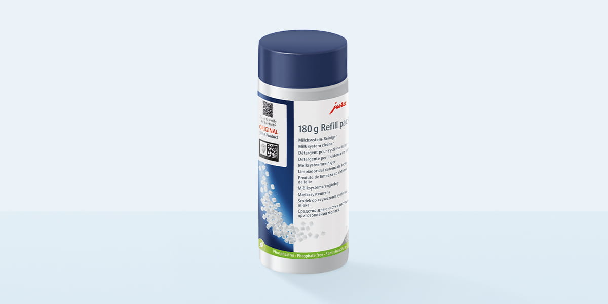 Eine ausgeprägte Ökointelligenz hat bei JURA genauso Tradition wie der nachhaltige Umgang mit Ressourcen und Energie. Deshalb setzt JURA auch bei den Original-Milchsystem-Reiniger auf eine ausschliesslich phosphatfreie Zusammensetzung. Die optimierte Formel garantiert TÜV-zertifizierte Hygiene für Ihr Milchsystem bei gleichzeitiger Umweltschonung.