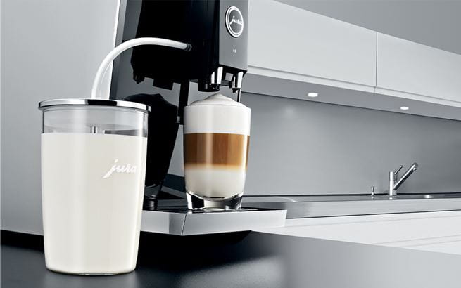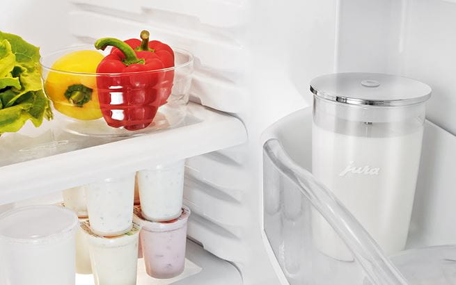 Der Glas-Milchbehälter ist unverzichtbar als ideale Ergänzung für alle Kaffeeliebhaber, die sich, ihre Familie und ihre Gäste gerne ab und zu mit einem angesagten Flat White, Latte macchiato oder Cappuccino verwöhnen möchten. Perfekt auf die Designsprache von JURA abgestimmt, lässt er sich leicht im Kühlschrank verstauen und bei Bedarf an den Vollautomaten anschließen.  Die Milchlanze verfügt über die ideale Anschlusshöhe, sodass die Milch jederzeit leicht angesaugt und aufgeschäumt wird. Der Behälter fasst 0,5 Liter und ist spülmaschinentauglich.