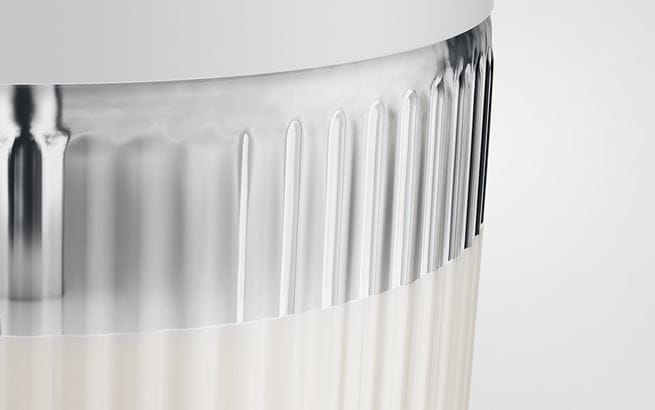 Mit ihrer gerillten Oberflächenstruktur ist die Milch-Karaffe ein wahrer Blickfang und sorgt in ihrer Beschaffenheit für einen sicheren Griff. Auch beim Befüllen zeigt sie sich dank Deckel mit schwenkbarer Abdeckung von ihrer funktionalen und ästhetischen Seite. Die Milch-Karaffe bietet mit zwei wechselbaren Silikonadaptern eine praktische und unverkennbare Kennzeichnung von Milchalternativen und findet mit ihrer Größe in jedem Kühlschrank Platz.
